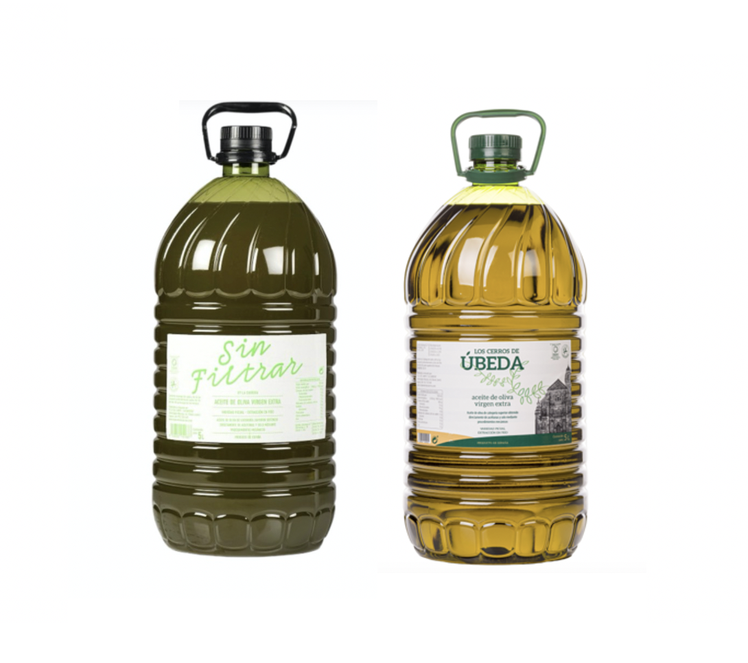 Aceite de Oliva Virgen Extra. Picual – SIN FILTRAR y FILTRADO (2 S/F + 1 F) – SCA La Carrera – 5 Litros PET. 3 unidades Caja